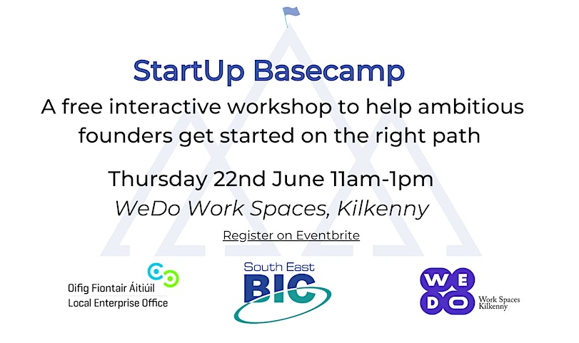 StartUp Basecamp is aimed at Entrepreneurs at the start of their journey. This free interactive workshop to help ambitious founders will take place on Thursday 22nd June at 11am in WeDo Workspaces, Kilkenny.