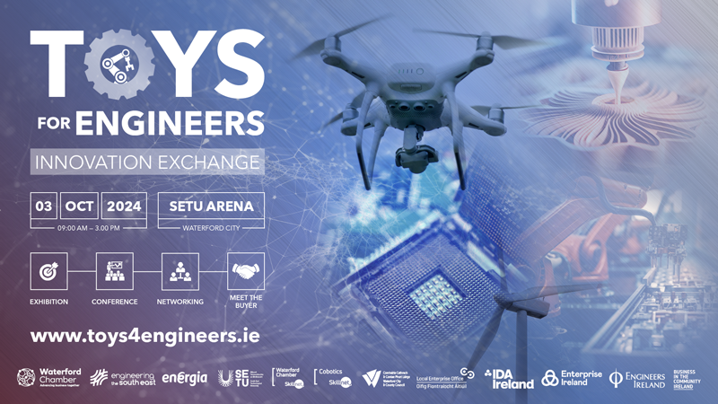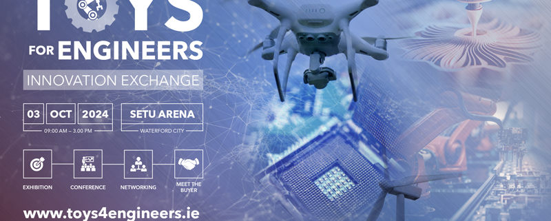 The Toys4Engineers Conference & Expo Innovation Exchange is on next Thursday 3rd October at the SETU arena. The Future of Engineering, Tech, Pharma, Biomed, Agri-Food, Manufacturing, Construction & Renewable Energy will be on show.